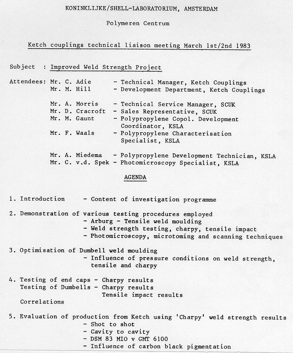Polypropyleen is voor mij het summum onder de kunststoffen, ondanks de beperkingen tov sommige andere polymeren. Ik bouwde mijn werk af en werd aangenomen bij Arend Noordam, die de Carilon productgroep aanvoerde. Carilon is een polyketon met fantastische eigenschappen. Zo is het bestand tegen brandstoffen als benzine en diesel en laat het nauwelijks tot geen benzinedamp door; dit in tegenstelling tot de meeste andere kunststoffen.